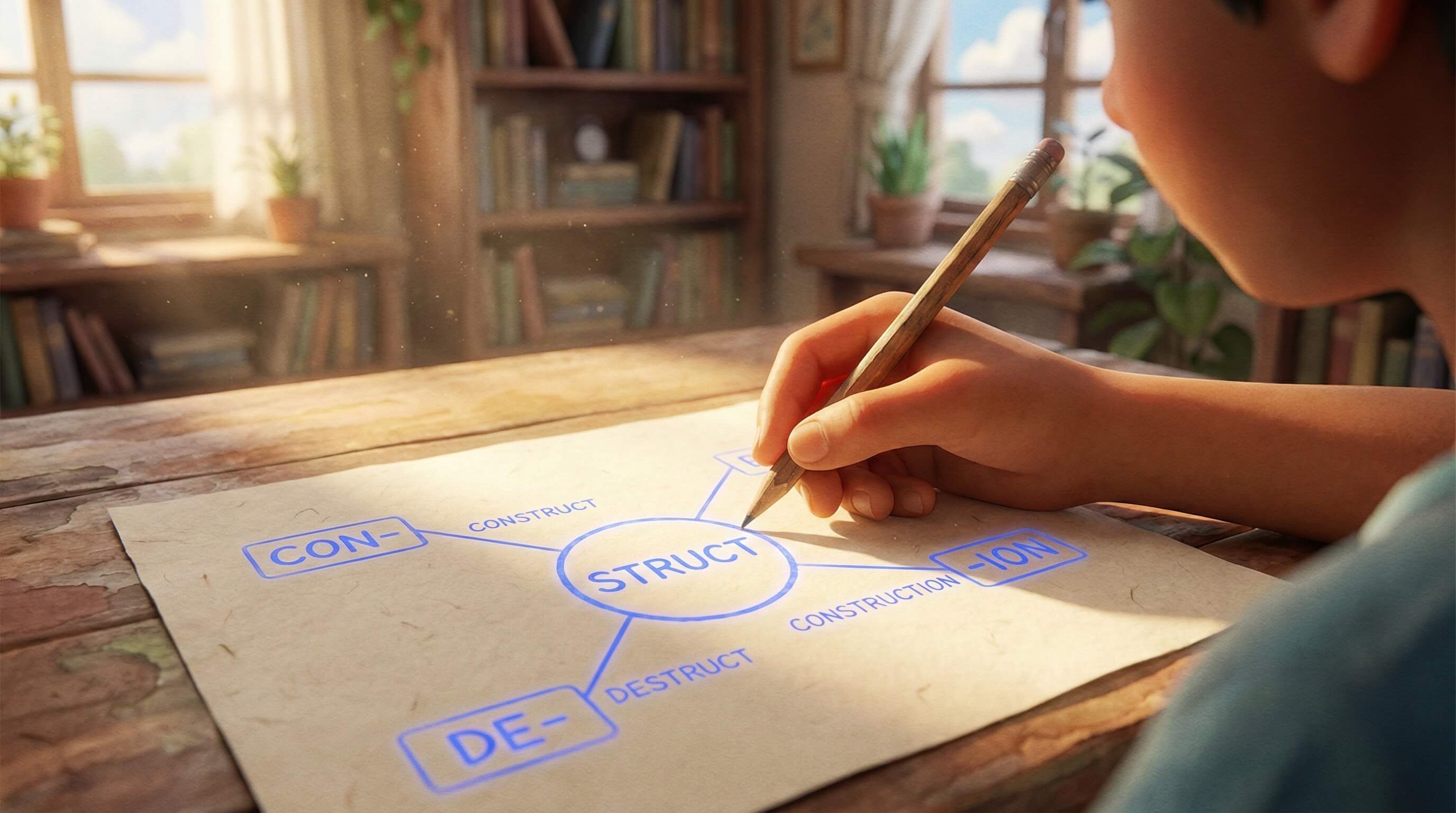 In grades 3-8, students encounter too many new academic words to memorize individually. They need to learn the code. Morphology is the study of prefixes, bases, and suffixes. Instead of memorizing "construction," "destruction," "instruction," and "structure" as four separate words, you teach the single root struct (to build).