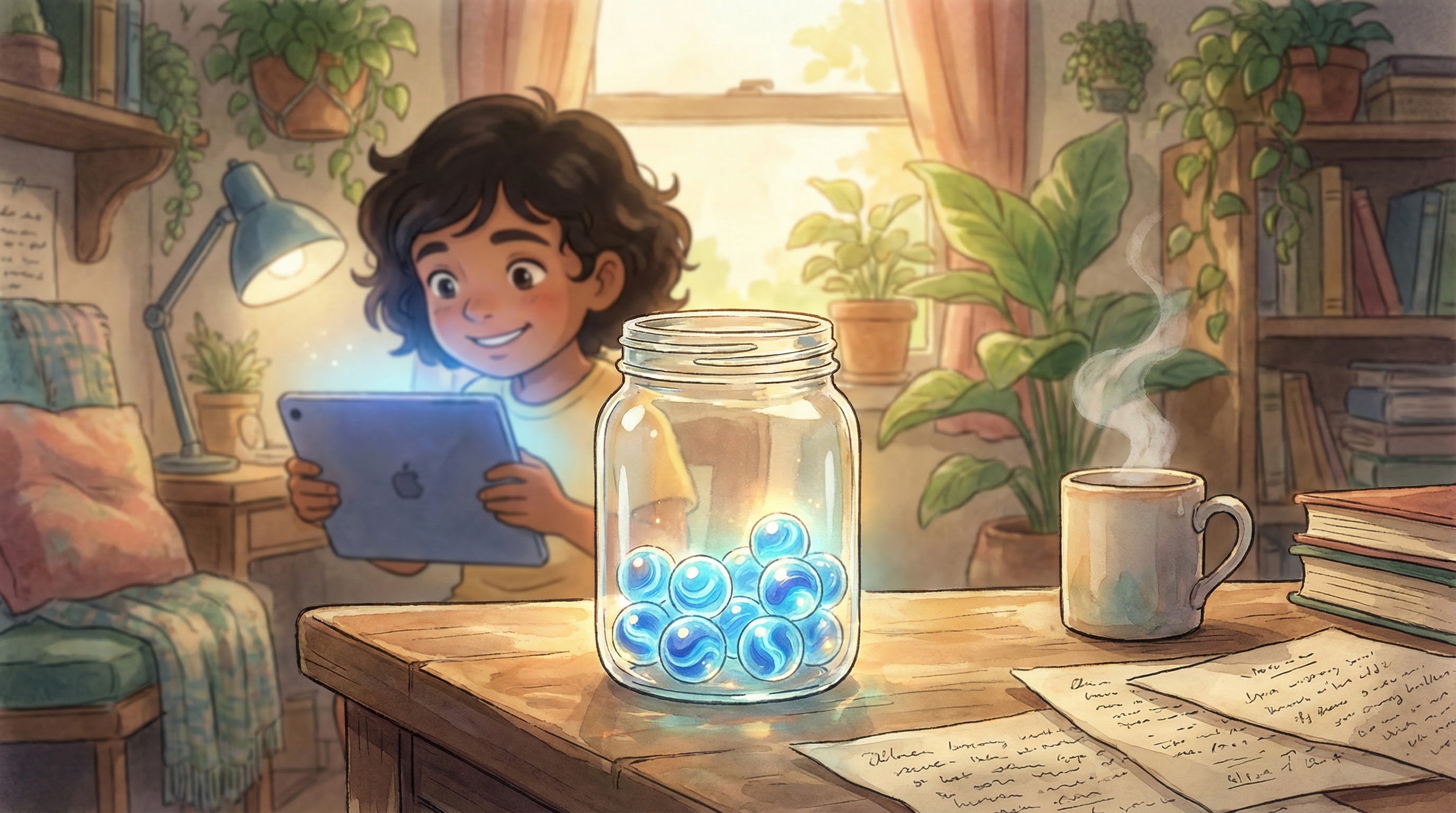 For anxious children, studying with a supportive parent (or "co-regulating") is often better initially. Sit with them. As they build confidence (marbles), you can gradually step back and let them practice independently with the AI tutor.